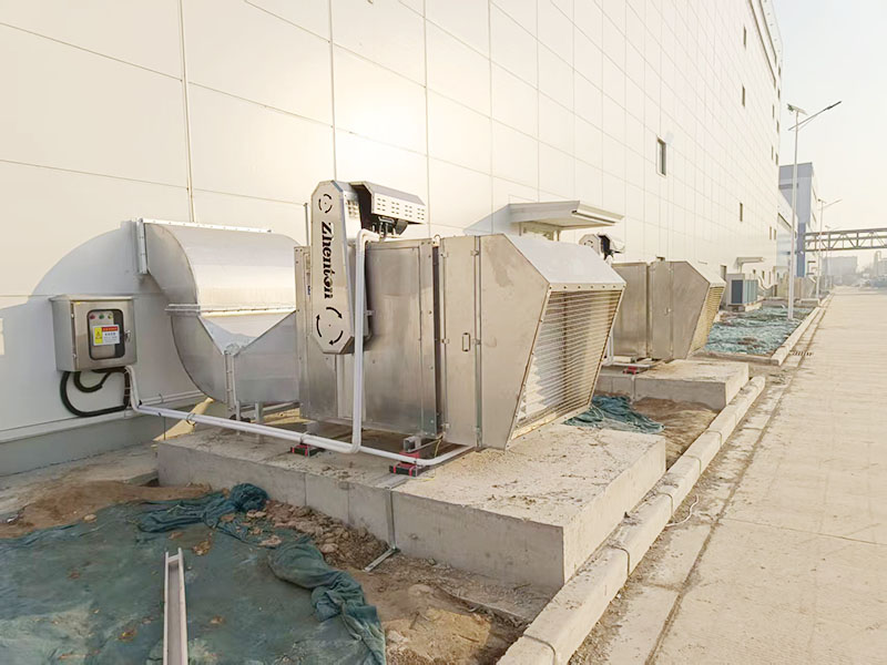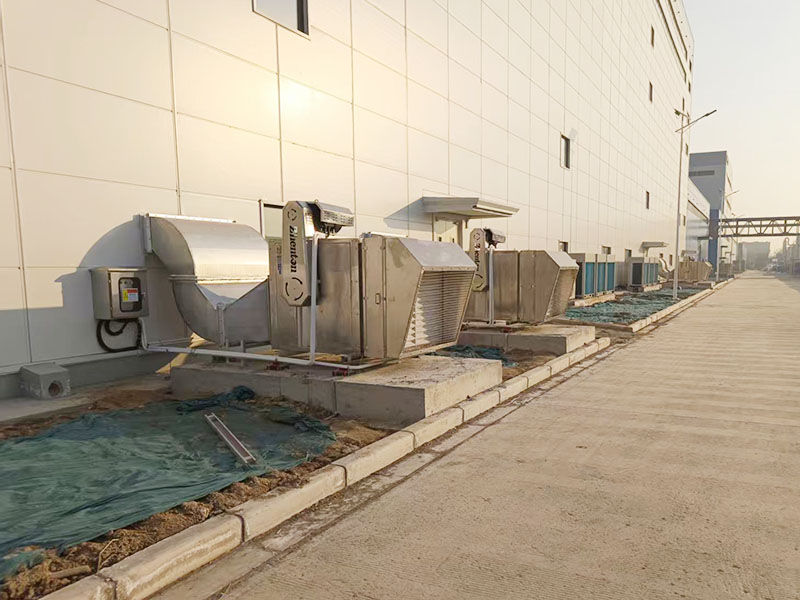 针对该厂房的具体情况设计使用通风换气设备进行整个车间通风换气改善室内空气状况。根据车间特性设计采用9台进风段三级净化304不锈钢通风设备加304不锈钢管道向车间内输送洁净空气,从而达到通风、换气、净化、降温的效果。