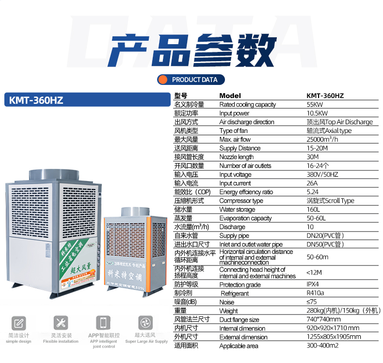 大风量设计,一台可覆盖降温面积300-400平方连接风管,车间各个角落送风无忧